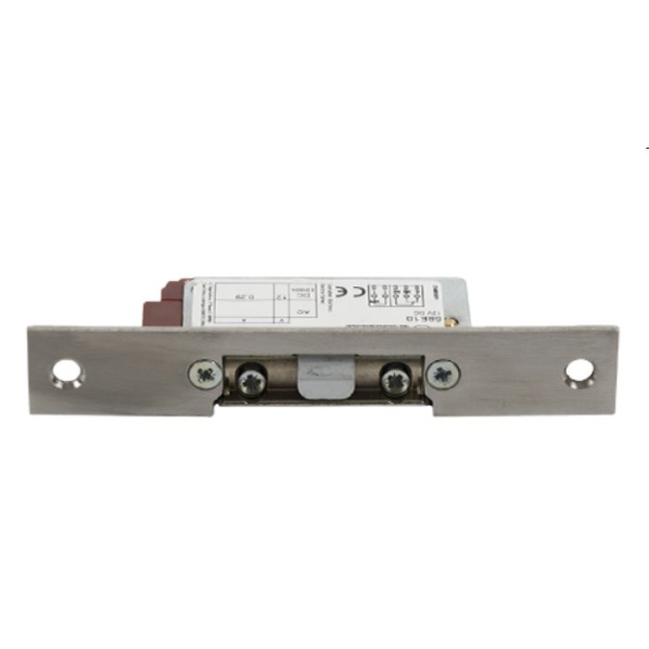 Plně reverzibilní, vysoce odolný elektrický otvírač určený pro instalaci do zárubní dveří. Se šířkou pouhých 16mm je jedním z nejmenších na trhu a je určen zejména pro úzké profily jako jsou hliník, dřevo nebo PVC. Tento otvírač je blokován, pokud je pod napětím. Při přerušení napětí je otvírač odblokován a je možné dveře otevřít. Zároveň obsahuje i mikrospínač monitorující stav dveří, otevřené nebo zavřené, který může přes výstupní svorky odesílat dále do dohledového systému. Tato varianta je dodávána s krátkým krycím čelním plechem (130mm).