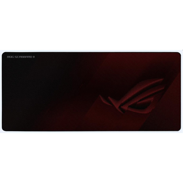 Rozšírená hracia podložka pod myš s vynikajúcou trvanlivosťou a odolnosťou proti postriekaniu, s nápisom svietiacim v tme, s obšitými okrajmi a protišmykovým podkladom Rozšírená herná podložka pod myš ponúka veľkú plochu pre pohyb myši a priestor pre hranie hier Trvanlivá tkanina Cordura® Lite odolná proti postriekaniu Nápis ROG Scabbard svietiaci v tme Červený protišmykový podklad ROG Obšité okraje proti rozmrveniu