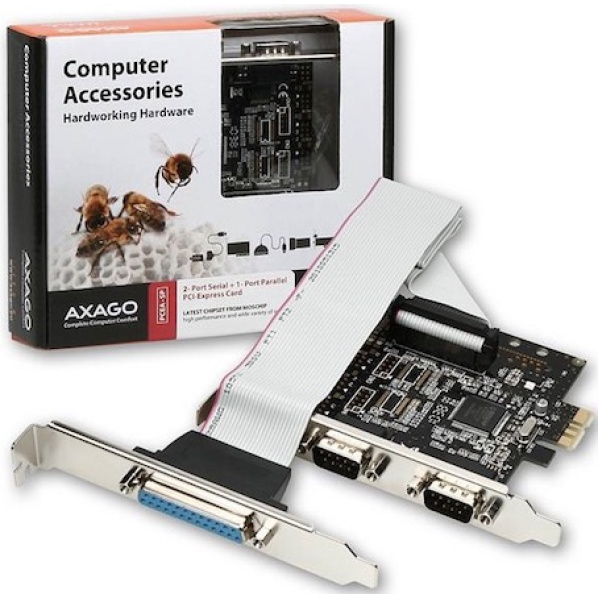PCI-Express karta AXAGO PCEA-S4L rozšíri stolný počítač o štyri sériové porty štandardu RS-232. Štvorica DB9 konektorov sa do radiča pripája cez rozbočovacia fan-out kábel. Bezproblémová kompatibilita a široké možnosti nastavovania portov sú zaistené použitím osvedčeného čipsetu spoločnosti Moschip. Balenie obsahuje okrem karty sa záslepkou štandardného rozmeru tiež low profile záslepku umožňujúca montáž karty do nízkoprofilových skríň. Vlastnosti: • Kompatibilný s 1-Lane (x1) PCI-Express s priepustnosťou 2.5 Gbit/s. • Kompatibilný tiež s x4, x8 alebo x16 PCIe sloty. • Vyhovuje PCI Express Base špecifikácii revízie 1.1, kompatibilné s PCI-Express 1.0a / 2.0 / 2.1 / 3.0. • Podpora Plug and Play - automatický výber IRQ prerušenia a I/O adresy. • Podpora Re-Map IO Address - nastavenie adresy COM portu (táto funkcia je podporovaná len v DOS). • PCI-Express adapter je osadený DB44M konektorom pre pripojenie rozbočovacieho kábla so štyrmi DB9M konektormi. • Použitý čipset ASIX (predtým Moschip) MCS9904CV-AA. Sériové porty: • 4x sériový RS-232 port s DB9 male konektormi. • 256-Byte Transmit & receive FIFO pre každý port. • Kompatibilný s 16C450/16C550/Extended 16C550/16C650/Enhanced Mode UART. • Teoretická prenosová rýchlosť použitého čipu až 16 Mb/s. • Maximálna prenosová rýchlosť použitých RS232 budičov až 250 kBaud. • Podpora hardware a software flow control. • Nastaviteľná dĺžka slova 4, 5, 6, 7 alebo 8 bitov. • Nastaviteľná parita (párna, nepárna, žiadna, Mark, Space), 1, 1.5 alebo 2 stop bity. • Podpora sériových signálov TXD, RXD, RTS, CTS, DTR, DCD, DSR, RI. • Podpora pripojenie sériových zariadení ako sú bankomaty, pokladne, čítačky čiarových kódov, CNC stroje, tablety, POS, PDA a pod. Podporované operačné systémy: • MS DOS 6.22, MS Windows 2000 / XP / Vista / 7 / 8 / 8.1 / 10 a novšie, Windows Server 2003 / 2008 / 2012 / 2016 a novšie (podporované všetky 32- i 64-bitové verzie OS Windows), Linux s jadrom 2.6.11 a vyšším. Balenie v kartónovej škatuľke z recyklovanej lepenky obsahuje: • PCI-Express kartu so záslepkou štandardného rozmeru • low profile záslepku • rozbočovacia split (Octopus) kábel DB44F -> 4x DB9M • CD s ovládačmi • tlačený inštalačný návod v CZ, ENG, SK, PL.