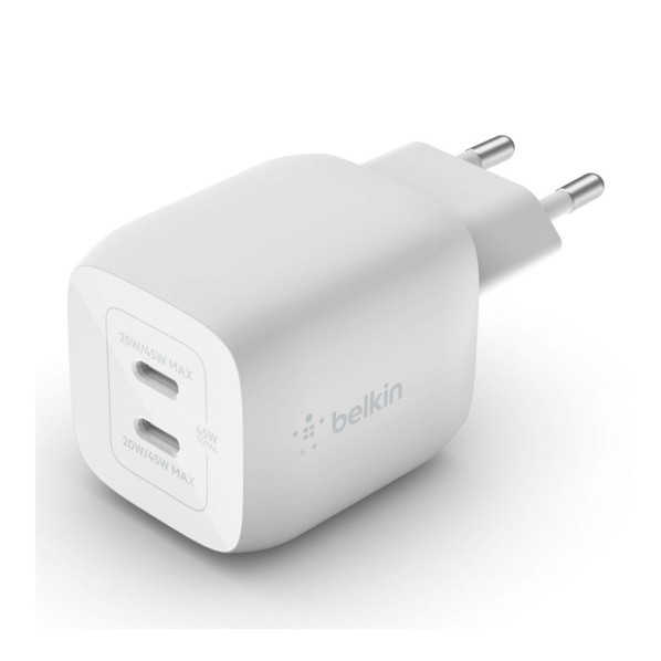 Popis výrobku Belkin 45W Dual USB-C GaN PD Wall Charger with PPS - White