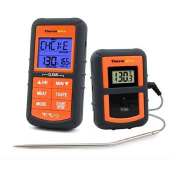 Bezdrôtový digitálny teplomer na meranie teploty v rúre a mäsa, 7 predprogramovaných nastavení:, dosah až 100 m Príprava skvelých jedál si vyžaduje dokonalú kontrolu teploty. Či už varíte podľa rodinných receptov, alebo skúšate niečo nové, najlepšie výsledky dosiahnete len vtedy, ak dosiahnete presnú teplotu. Nikdy to nebolo jednoduchšie Digitálny teplomer ThermoPro TP-07C vám nielen umožní pripraviť to najlepšie jedlo ako profesionál, ale ušetrí vám aj veľa práce. Teplotu za vás monitoruje diaľkový prijímač, ktorý môžete mať vždy poruke. Môžete tak sledovať televíziu alebo čítať knihu bez obáv, že sa vám pripáli večera. Keď teplota mäsa dosiahne nastavenú úroveň , prijímač vás okamžite upozorní zvukovým signálom a podsvietenie LCD displeja sa zmení na červené. ZariadenieThermoPro TP-07C je vybavené vysokokvalitnou dvojitou sondou z nehrdzavejúcej ocele a flexibilným spojovacím drôtom na dokonale prepečené mäso. Prijímacia jednotka sa automaticky vypne, ak neprijme teplotný signál z vysielača dlhšie ako 30 minút. Vysielač sa tiež automaticky vypne, ak je nameraná teplota nižšia ako 50 °C (122 °F) počas 120 minút. Funkcie: Alarm Jednoduché používanie Predprogramovanie pre rôzne druhy mäsa Predprogramovanie pre rôzne stupne prepečenia Veľký LCD displej Odpočítavanie a stopky Prepínanie medzi °C/°F Stojan na prijímač Uloženie predchádzajúcich nastavení Špecifikácie: Rozsah merania: 0–300 °C Presnosť merania: ±1 °C Dĺžka kábla sondy: 1 m Dosah signálu prijímača: 100 m Batérie: 4×AAA (súčasťou balenia) Priemer sondy v tenšej počiatočnej časti: 2,5 mm Priemer sondy v hrubšej časti: 4 mm