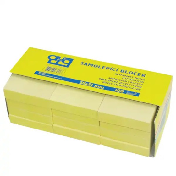 Bloček samolepiaci 38x51 AURO, žltý, 100 l.