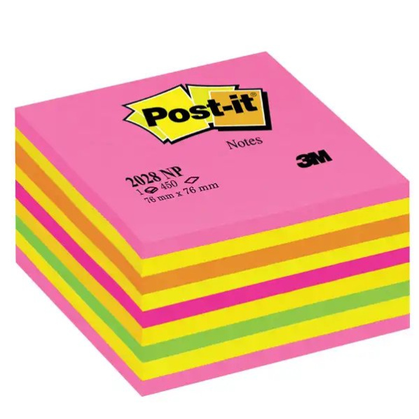 Popis výrobku Bloček samolepiaci 76x76 Post-it kocka neón /450 lBalenie1 ksKocky Post-it obsahujú 450 samolepiacich lístkov. Neónová kocka v odtieňoch ružovej, žltej a zelenej farby.
