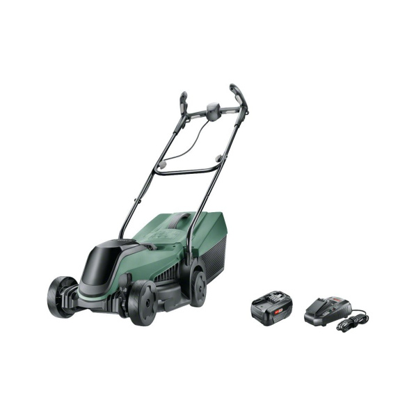 18V akumulátorová kosačka pre bezpracné mestské záhradníčenie Výkonná akumulátorová kosačka pre mestské záhrady Rukoväte Ergoflex zaručujú pohodlnú manipuláciu a jednoduché ovládanie Hrebene na trávu zaručujú dokonalé výsledky pozdĺž okrajov a stien Páčka s možnosťou nastavenia 3 výšok kosenia od 30 do 60 mm Technické údaje Typ akumulátora: Lítium-iónová Typ kompatibilného akumulátora: Lítium-iónová Napätie akumulátora: 18 V Napätie kompatibilného akumulátora: 18 V Funguje pri kapacite akumulátora: 4 Ah Doba nabíjania akumulátora: 240 min Odporúčaná plocha trávnika: až 300 m2 Šírka strihu: 35 cm Systém kosenia: Rotačný nôž Hmotnosť: 9,9 kg Objem zberného koša: 31 L Výška strihu: 30 - 60 mm Nastavovanie žacej výšky: 3-násobné, centrálne Druh rukoväte: "Systém Ergoflex" Funkcia Systém riadenia energetickej úspornosti EEM (Efficient Energy Management) Bočné hrebene na trávu Integrované držadlo na prenášanie Informácie o hluku a vibráciách (ARM / Rotak 1) Hladina akustického tlaku: 69 dB (A) Hladina akustického výkonu: 89 dB (A) Nepresnosť K: 1 dB
