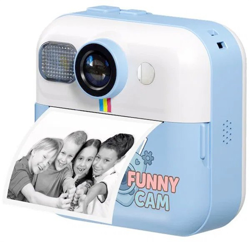 Instantný fotoaparát – kompatibilný s pamäťovou kartou micro SD, maximálna veľkosť SD karty 32 GB, napájanie zaisťuje USB-C, 2,4" displej, hmotnosť 220 g, modrá farba