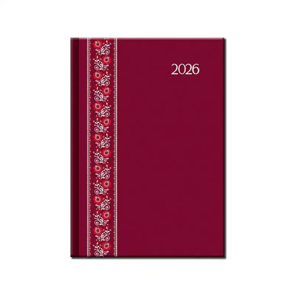 Popis výrobku Denný diár A5 FOLK EXTRA červený 2026