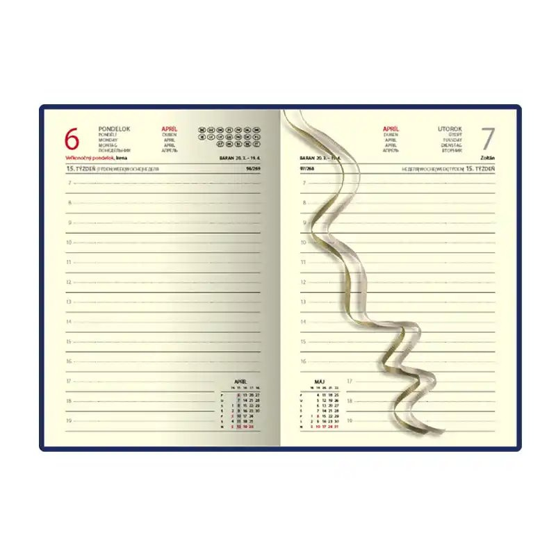 Zaujímavý dizajn denného diára tvorí kombinácia dvoch farieb poťahového materiálu. Diár je v pevnej