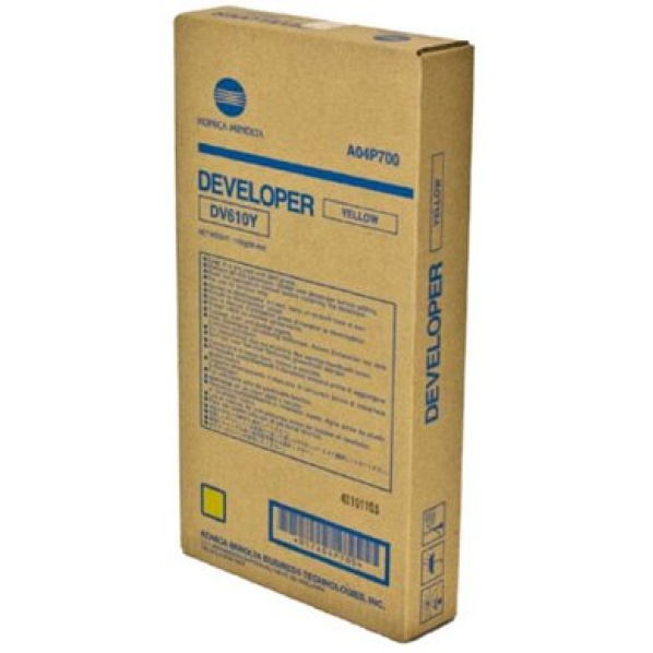 Popis výrobku developer MINOLTA DV610Y Bizhub Pro C5500/C6500 yellow (150000 str.)1 sáčok á 1100g , C6500/6501 na cca 200 000 strán, C5500/5501 na cca 150 000 strán, C7000 na cca 340 000 strán, C6000 na cca 300 000 strán