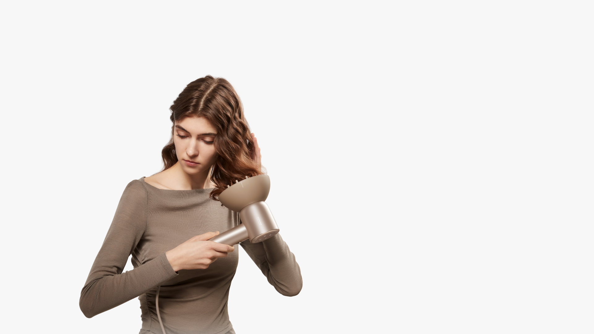 Nasaďte difuzér a umiestnite vlasy na jeho povrch, aby ste zachovali prirodzený tvar kučier.