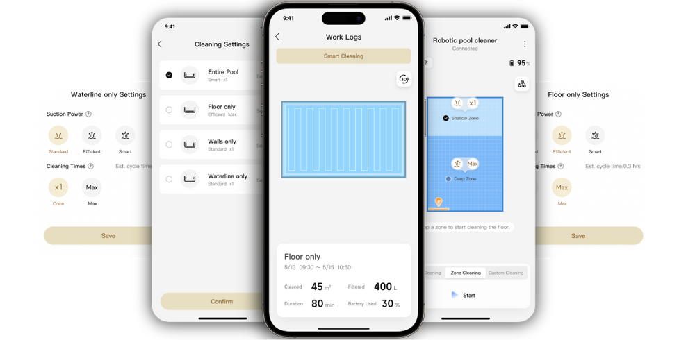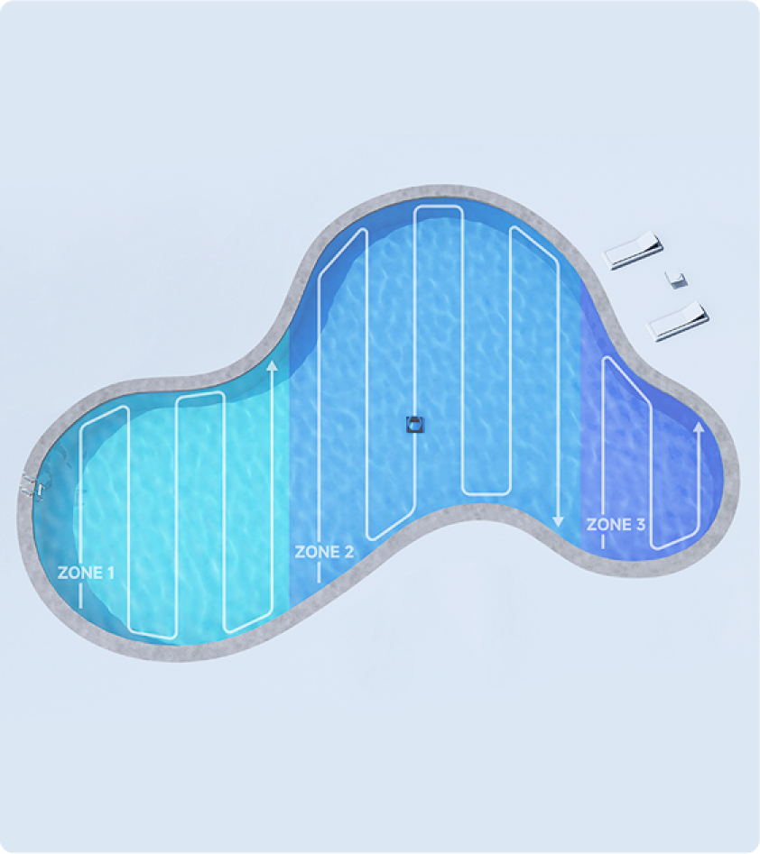 Z1 automaticky rozpozná rôzne tvary bazéna a prispôsobí svoje stratégie čistenia pre optimálne výsledky.