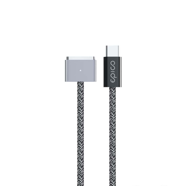Nabíjací kábel Epico USB-C to MagSafe 3 je ideálna voľba na nabíjanie vášho MacBooku Pro. Vďaka kvalitnému nylonovému opleteniu je kábel vysoko odolný. Dĺžka kábla je 2 ma vďaka Extended Power Range (EPR) kábel dosiahne výkon až 140 W. Magnetický konektor MagSafe 3 uľahčuje pripojenie do napájacieho portu, jeho magnety sú dostatočne pevné, aby odolali nechcenému odpojeniu, ale v prípade zavadenia sa ľahko uvoľní. Prebiehajúce nabíjanie signalizuje praktická LED kontrolka.