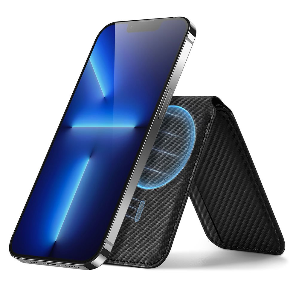 Popis ESR Vegan Leather Magnetic Wallet Stand - Black Carbon Fiber
