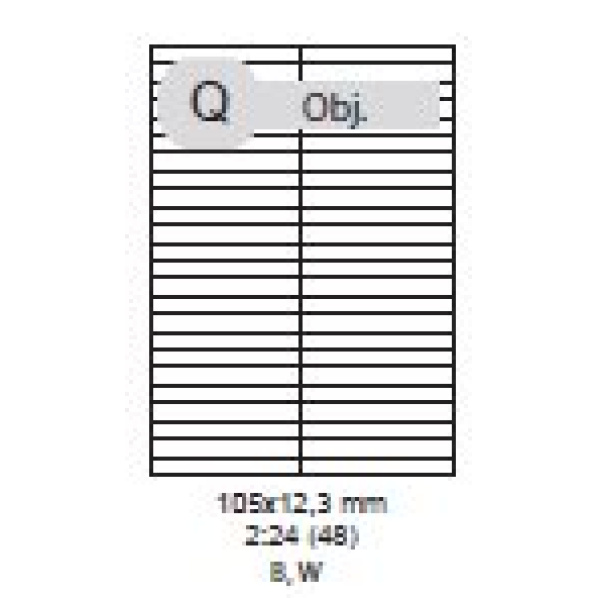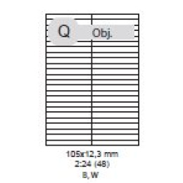 Popis výrobku etikety ECODATA Samolepiace 105x12,3 mm univerzálne biele 48ks/A4 (100 listov A4/bal.)tovar na objednávku! Dodanie do 2 týždňov Min. odber 20 balení etikety ECODATA Samolepiace 105x12,3 mm univerzálne biele 48ks/A4 (100 listov A4/bal.)