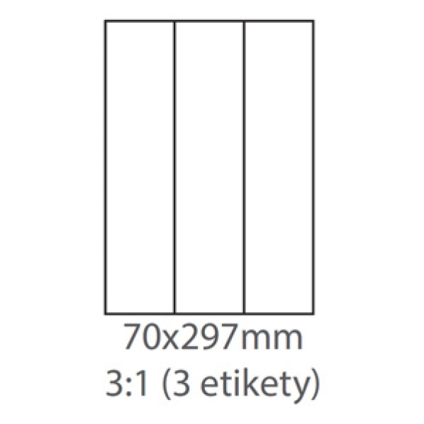 etikety ECODATA Samolepiace 70x297 univerzálne biele 3ks/A4 (100 listov A4/bal.)