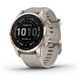 Popis výrobku Garmin fenix 7S Sapphire Solar, Cream Gold Titanium, Light Sand BandAkumulátor - výdrž: Režim smart hodiniek: až do 11 dní / 14 dní so solárnym dobíjaním, Režim GPS: až do 37 hodín / 46 hodín so solárnym dobíjaním, Režim Expedition GPS: až do 26 dní / 43 dní so solárnym dobíjaním Rozmery a vlastnosti: Rozmery balenia, ŠxVxH: 10.0 x 10.0 x 10.0 cm Rozmery zariadenia, ŠxVxH: 42.0 x 42.0 x 14.1 mm Oxymeter - Pulse Ox: Áno Displej - veľkosť, ŠxV: 1.2" (30.4mm - uhlopriečka) Displej - rozlíšenie, ŠxV: 240 x 240 bodov Displej - uhlopriečka, "; cm: 1.2"; 3.0 cm Displej - typ: Farebný - transflective memory-in-pixel (MIP) Dotyková obrazovka: Áno Ovládanie: tlačidlá + dotyk Materiál sklíčka: Power Sapphire™ Materiál lunety: titán potiahnutý DLC Materiál púzdra: polymér vystužený vláknom s titánovým zadným krytom Materiál remienku: silikón Hmotnosť balenia: 303.3 g Hmotnosť zariadenia: 58 g (bez remienka 42 g) Akumulátor - typ: nabíjateľná Lithium-ion Akcelerometer: Áno Gyroskop: Áno Solárne dobíjanie: Áno Teplomer: Áno Odolnosť voči vode: 10 ATM* Odolnosť voči pádu: Áno (MIL-STD-810) GPS prijímač: GPS + GLONASS + GALILEO Mapy a pamäť: Predinštalované mapy: TopoActive Europe + SkiView™ mapy lyžiarskych stredísk + golfové ihriská Možnosť dohrávania máp: TopoActive mapy sveta cez Wi-Fi Vstavaná pamäť: 32 GB Používanie pam. kariet: Nie product_web: 0 Funkcie a výbava: Záznam trás/ciest: Áno TracBack (cesta späť): Áno Tras. počítač (rýchlosti, vzdialenosti a pod.): Áno Garmin Connect™ kompatibilita: Áno Virtual Partner® (fiktívny súper):: Áno Auto Pause® (zast. tréning podla rýchl.): Áno Auto Lap® (začne okruh po urč. vzial.): Áno Auto Scroll (zobrazovanie stránok): Áno Multi-sport (zmena šport. módu): Áno Pokročilé tréningy -tvorba vl. tréningov: Áno Jednoduché tréningy (čas,vzdial., kalóri: Áno Alarm na tempo/kadenciu počas aktivity: Áno Intervalový tréning: Áno HIIT tréningy: Áno Úprava vzhľadu obrazoviek: Áno Stamina: Áno Bluetooth®: Áno Wi-Fi®: Áno MP3 prehrávač: Áno Elektronický kompas: Áno Barometrický výškomer: Áno Lov/ryby kalendár: Áno Slnko a Mesiac informácie: Áno Tabuľky príliv/odliv: Áno Výpočet plochy: Áno Kompatibilita s ext. zariadeniami (ANT): Áno Sledovanie počtu krokov: Áno Prepojenie: USB/Bluetooth/ANT+/Wi-Fi Aplikácie: Garmin Connect Mobile, Connect IQ store Iné (parametre, príslušenstvo, doplnky): - LED baterka: Nie Garmin Pay™: Áno Obsah balenia: - fénix 7S Sapphire Solar, Cream Gold Titanium, - silikónový remienok QuickFit 20 - Light Sand (remienok vhodný pre zápästie s obvodom 108 - 182 mm), - USB nabíjací kábel, - príručka používateľa, - iná dokumentácia