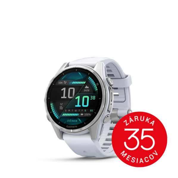 fenix® 8 AMOLED, 43 mm BE LIMITLESS Prémiové GPS smart hodinky s vysokou odolnosťou a dlhou životnosťou. Elegantný dizajn, všestranné športové a outdoorové použitie. Pokročilé tréningové funkcie, zabudovaný mikrofón a reproduktor, integrovaná LED baterka a nové funkcie na potápanie. Kompaktný model vhodný pre menšie zápästia. ODOLNÁ KONŠTRUKCIA Nová, odolnejšia konštrukcia hodiniek je vhodná aj na potápanie. Vodotesné tlačidlá, kovová ochrana snímačov a jasný 1,3” displej AMOLED. Hodinky spĺňajú americké vojenské normy pre odolnosť voči teplote, nárazom a vode. ZABUDOVANÁ LED BATERKA Nielen pri slabom osvetlení využijete vstavanú výkonnú LED baterku s dvoma farbami svetla, nastaviteľnou intenzitou a rôznymi režimami osvetlenia. Režim červeného svetla vám pomôže s bezpečnostným osvetlením v noci. PRÉMIOVÉ TRÉNINGOVÉ FUNKCIE Denné tréningové odporúčania, adaptívne tréningové plány na preteky, cielené plány silového tréningu, funkcia výdrže v reálnom čase s odhadom zostávajúcej výdrže, vyhodnotenie tréningovej záťaže/tréningového zloženia a ďalšie funkcie, ktoré vám pomôžu zlepšiť sa vo vašom športe. VYLEPŠENÁ NAVIGÁCIA Funkcia dynamického výpočtu obchádzky umožňuje určiť vzdialenosť, ktorú chcete zabehnúť. Potom sa zobrazia návrhy trasy, ktoré vás vrátia späť v čase. Vďaka podrobným mapám TopoActive si môžete prezerať aj vrstevnice. K dispozícii sú aj mapy golfových ihrísk a lyžiarskych stredísk na celom svete. REKREAČNÉ POTÁPANIE Vodotesnosť hodiniek do 40 mestrov a nepriepustné kovové tlačidlá vám umožnia dosiahnuť nové hĺbky, zatiaľ čo presné meranie pod vodou zaručí, že vám neunikne žiadny údaj. Parametre: Optický pulzomer / oximeter: Áno Displej - rozlíšenie, ŠxV: 416 x 416 bodov Displej - uhlopriečka, "; cm: 1.3"; 3.3 cm Displej - typ: Farebný AMOLED Dotyková obrazovka: Áno Ovládanie: tlačidlá + dotyk Materiál sklíčka: Corning® Gorilla® Glass Nepriepustné tlačidlá: Áno Materiál lunety: nehrdzavejúca oceľ (Stainless Steal) Materiál púzdra: polymér vystužený vláknom s oceľovým zadným krytom Materiál remienku: silikón Vstavaný reproduktor/mikrofón: Áno Akumulátor - typ: nabíjateľná Lithium-ion Akcelerometer: Áno Gyroskop: Áno Solárne dobíjanie: Nie Teplomer: Áno Senzor okolitého svetla: Áno Odolnosť voči vode: 10 ATM*, potápanie do 40 metrov Odolnosť voči pádu: Áno (MIL-STD-810) GPS prijímač: Multi-Band GNSS: GPS/GLONASS/GALILEO Predinštalované mapy: SkiView™ mapy lyžiarskych stredísk + golfové ihriská Možnosť dohrávania máp: TopoActive mapy sveta cez Wi-Fi Vstavaná pamäť: 16 GB Záznam trás/ciest: Áno TracBack (cesta späť): Áno Tras. počítač (rýchlosti, vzdialenosti a pod.): Áno Virtual Partner® (fiktívny súper):: Áno Auto Pause® (zast. tréning podla rýchl.): Áno Auto Lap® (začne okruh po urč. vzial.): Áno Auto Scroll (zobrazovanie stránok): Áno Multi-sport (zmena šport. módu): Áno Pokročilé tréningy -tvorba vl. tréningov: Áno Jednoduché tréningy (čas,vzdial., kalóri: Áno Alarm na tempo/kadenciu počas aktivity: Áno Intervalový tréning: Áno HIIT tréningy: Áno Úprava vzhľadu obrazoviek: Áno Stamina: Áno Hlasové ovládanie: Áno (nepodporuje slovenský jazyk) Bluetooth®: Áno Wi-Fi®: Áno MP3 prehrávač: Áno Elektronický kompas: Áno Barometrický výškomer: Áno Lov/ryby kalendár: Áno Slnko a Mesiac informácie: Áno Tabuľky príliv/odliv: Áno Výpočet plochy: Áno Kompatibilita s ext. zariadeniami (ANT): Áno Sledovanie počtu krokov: Áno Prepojenie: USB/Bluetooth/ANT+/Wi-Fi Aplikácie: Garmin Connect, Garmin Connect IQ, Garmin Explore, Garmin Golf, Garmin Messenger, Garmin Dive Maximálna prevádzkova hĺbka pri potápačskej aktivite: 40 metrov LED baterka: Áno Garmin Pay™: Áno Akumulátor - výdrž: Režim smart hodiniek: až do 10 dní (4 dni - always-ON displej), Režim GPS: až do 28 hodín (22 hodín - always-ON displej) Rozmery balenia, ŠxVxH: 9.35 x 9.25 x 8.45 cm Rozmery zariadenia, ŠxVxH: 43.0 x 43.0 x 13.8 mm Hmotnosť balenia: 238 g Hmotnosť zariadenia: 66 g (bez remienka 50 g)