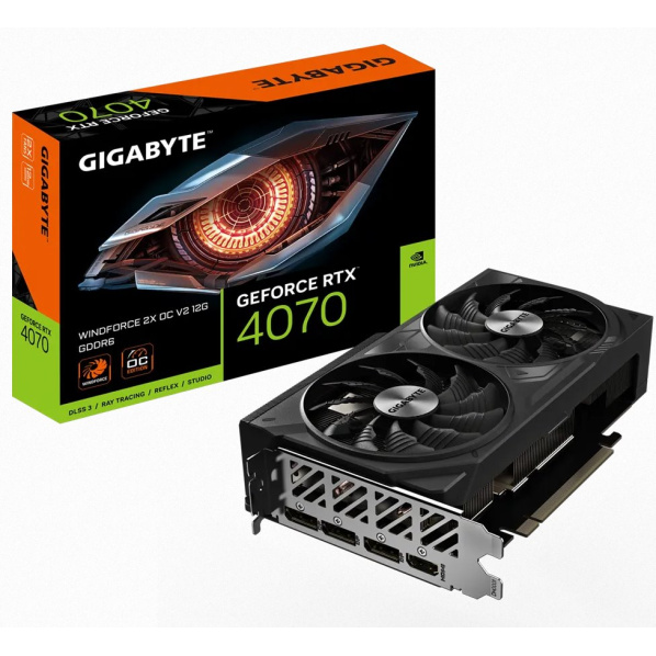 Popis výrobku Gigabyte GeForce RTX 4070 WINDFORCE 2X OC V2 12G KEY FEATURE Powered by NVIDIA DLSS 3, ultra-efficient Ada Lovelace arch, and full ray tracing 4th Generation Tensor Cores: Up to 4x performance with DLSS 3 vs. brute-force rendering 3rd Generation RT Cores: Up to 2X ray tracing performance Powered by GeForce RTX™ 4070 Integrated with 12GB GDDR6 192-bit memory interface WINDFORCE Cooling System Protection back plate CORE CLOCK 2490 MHz (Reference Card: 2475 MHz) Graphics Processing GeForce RTX™ 4070 Core Clock 2490 MHz (Reference Card: 2475 MHz) CUDA® Cores 5888 Memory Clock 20 Gbps Memory Size 12 GB Memory Type GDDR6 Memory Bus 192 bit Card Bus PCI-E 4.0 Digital max resolution 7680x4320 Multi-view 4 Card size L=201 W=122.3 H=48.4 mm PCB Form ATX DirectX 12 Ultimate OpenGL 4.6 Recommended PSU 650W Power Connectors 8 pin*1 Output DisplayPort 1.4a *3 HDMI 2.1a *1 Accessories Quick guide
