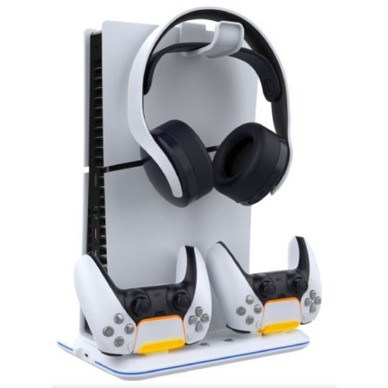 iPega P5S020W Multifunkční Nabíjecí RGB Stojan s Chlazením pro PS5 Slim White