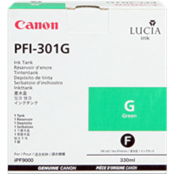 Popis výrobku kazeta CANON PFI-301G green iPF 8000/8100/9000/9100 (330ml)Atramentová kazeta CANON PFI-301G green pre iPF 8000/8100/9000/9100 iPF 8x00, 9x00 330ml, Pigment