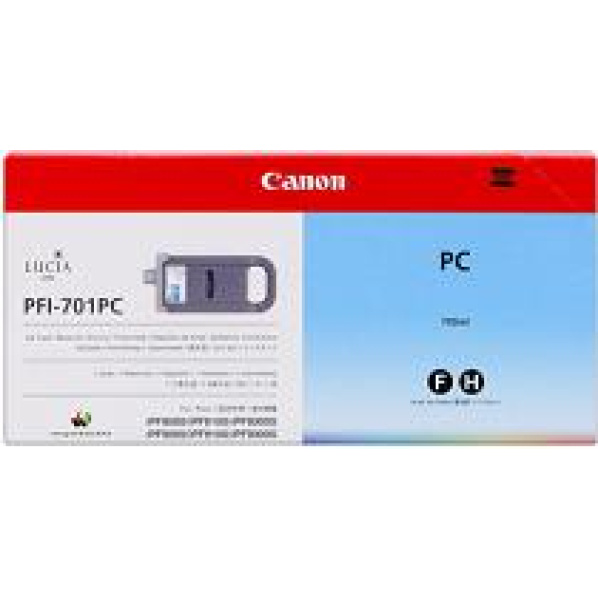 Popis výrobku kazeta CANON PFI-701PC photo cyan iPF 8000/8000s/8100/9000/9000s/9100 (700ml)Atramentová kazeta CANON PFI-701PC photo cyan pre iPF 8000/8000s/8100/9000/9000s/9100 iPF 8x00/s, 9x00/s 700ml, Pigment