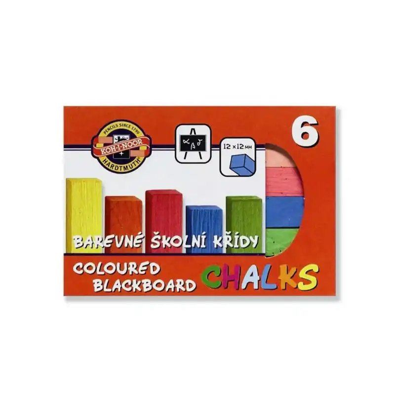 Sada 6 kusov štvorcovej farebnej kriedy 12 x 12 x 100 mm, určená na písanie na tabuľu, vložená do šk
