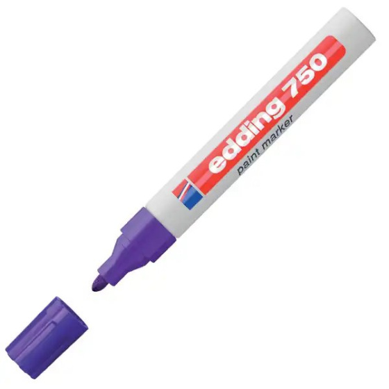 Lakový popisovač Edding 750 s hliníkovým obalom, s guľatým hrotom, vhodný na vodovzdorné písanie, značkovanie a kreslenie na takmer všetky materiály, ako napr. sklo, plast, drevo a kov. Nearomatický pigmentový atrament bez prísad toluénu/xylénu rýchlo schne a vytvára úplne krycí lakovaný povrch, vhodný aj na tmavé a priehľadné povrchy. Vysoká stálosť na svetle, nezmazateľnosť a odolnosť voči ohňu. Prietok atramentu riadený ventilom. Hrot okrúhly, šírka stopy 2-4 mm. Dodávaný samostatne alebo v sade 10 ks. Väčšie balenie 10 ks v jednej farbe.