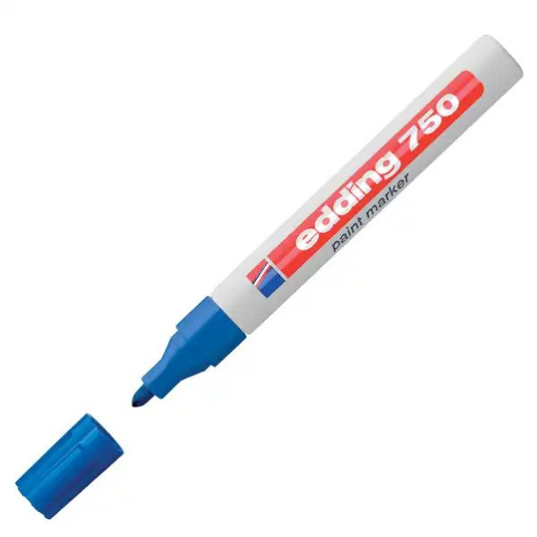 Lakový popisovač Edding 750 s hliníkovým obalom, s guľatým hrotom, vhodný na vodovzdorné písanie, značkovanie a kreslenie na takmer všetky materiály, ako napr. sklo, plast, drevo a kov. Nearomatický pigmentový atrament bez prísad toluénu/xylénu rýchlo schne a vytvára úplne krycí lakovaný povrch, vhodný aj na tmavé a priehľadné povrchy. Vysoká stálosť na svetle, nezmazateľnosť a odolnosť voči ohňu. Prietok atramentu riadený ventilom. Hrot okrúhly, šírka stopy 2-4 mm. Dodávaný samostatne alebo v sade 10 ks. Väčšie balenie 10 ks v jednej farbe.
