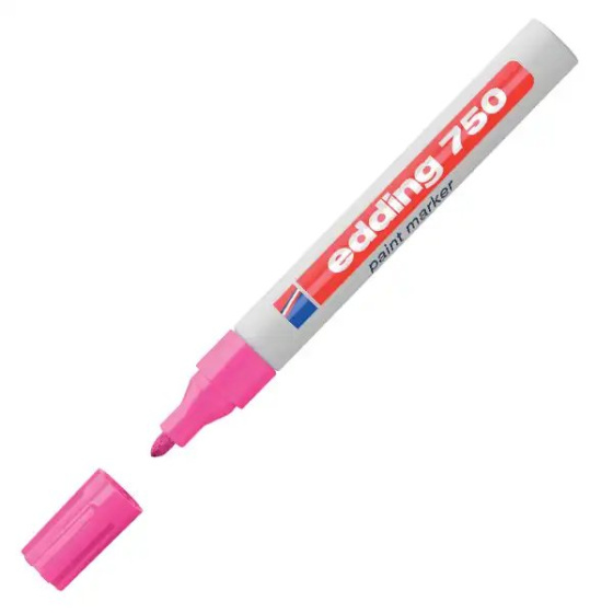 Lakový popisovač Edding 750 s hliníkovým obalom, s guľatým hrotom, vhodný na vodovzdorné písanie, značkovanie a kreslenie na takmer všetky materiály, ako napr. sklo, plast, drevo a kov. Nearomatický pigmentový atrament bez prísad toluénu/xylénu rýchlo schne a vytvára úplne krycí lakovaný povrch, vhodný aj na tmavé a priehľadné povrchy. Vysoká stálosť na svetle, nezmazateľnosť a odolnosť voči ohňu. Prietok atramentu riadený ventilom. Hrot okrúhly, šírka stopy 2-4 mm. Dodávaný samostatne alebo v sade 10 ks. Väčšie balenie 10 ks v jednej farbe.