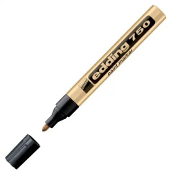 Lakový popisovač Edding 750 s hliníkovým obalom, s guľatým hrotom, vhodný na vodovzdorné písanie, značkovanie a kreslenie na takmer všetky materiály, ako napr. sklo, plast, drevo a kov. Nearomatický pigmentový atrament bez prísad toluénu/xylénu rýchlo schne a vytvára úplne krycí lakovaný povrch, vhodný aj na tmavé a priehľadné povrchy. Vysoká stálosť na svetle, nezmazateľnosť a odolnosť voči ohňu. Prietok atramentu riadený ventilom. Hrot okrúhly, šírka stopy 2-4 mm. Dodávaný samostatne alebo v sade 10 ks. Väčšie balenie 10 ks v jednej farbe.