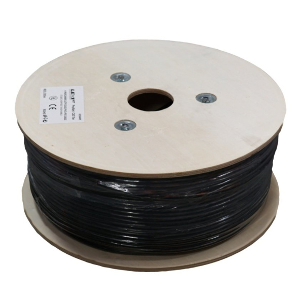 Popis výrobku LEXI kábel UTP, Cat5E, drôt, OUTDOOR doublejacket PVC+PE, Fca, cievka 305m - čiernakábel UTP venkovní dvouplášťový 4 páry PVC+PE černý CAT 5e drát 24AWG čistá měď. Měrky po metrech, balení na dřevěných cívkách po 305m. Vodiče o průřezu 24AWG, robustní černý plášť z LDPE odolávající UV záření a venkovním povětrnostním vlivům.