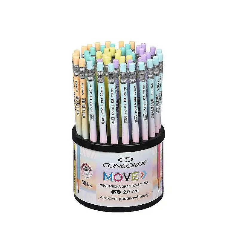 Štýlová a praktická mechanická grafitová ceruzka Move v atraktívnych pastelových farbách. Vďaka 2,0 mm hrubej tuhne s tvrdosťou 2B je ideálna na písanie aj skicovanie. Obsahuje extra dlhú náplň s dĺžkou 120 mm. Je bezdrevná, čo umožňuje jednoduché orezávanie s orezávadlom