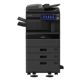 •Základný popis Rýchlosť tlače & kopírovania: 20 str./min (A4), 10 str./min. (A3) Čas zahrievania: Približne 13 sekúnd z úsporného režimu Veľkosť & Gramáž papiera: Kazeta - A5R-A3, 60-163 g/m2, Bypass - 100 x 148 mm-A3, 60-209 g/m2 Kapacita papiera: 1x 250 listov (kazeta), 1x 100 listov (Bypass), Max: 2900 listov Výstupný zásobník: kapacita 550 - listov Automatický duplex: A5R - A3, 60 - 163 g/m2 Typ ovládača: Toshiba e-BRIDGE Next Ovládací displej: 26 cm (10,1") farebný Multi-Touch Colour Panel Pamäť: Security SSD 128 GB(1), 4 GB RAM Rozhranie: 10Base-T/100Base-TX/1000Base-T, High Speed USB 2.0, WLAN* (IEEE802.11b/g/n), Bluetooth*, Wi-Fi Direct* Rozmery & Hmotnosť: 575 x 586 x 662 mm (Š x H x V) - 57 kg Štartovacia sada: Valce, developery, odpadová nádoba •Tlač Rozlíšenie: 600 x 600 dpi, 3 bit, 1,200 dpi x 1,200 dpi, 2 bit (1,200dpi x 2,400 dpi) iba s PostScript driver Jazyk stránky: PCL5e, PCL5c, PCL6 (PCL XL), XPS, PDF, a PostScript 3 Podporované systémy: Windows 11/10/8.1, Windows Server 2022/2019/2016/2012 R2/2012 (64 bit), Mac OS 10.12-12, Linux/Unix, Citrix, SAP, AS/400 Sieťové protokoly: TCP/IP (IPv4/IPv6), NetBios cez TCP/IP Farebné režimy: Automatický (ACS), Farebný, Dvojfarebný, Čiernobiely Nastavenie farieb: správa ICC profilov, RGB substitúcia, Jas farieb,Sýtosť farieb, Kontrast, Vyváženie farieb Mobilná tlač: e-BRIDGE Print & Capture, AirPrint, Mopria Print Service, Funkcia tlače: Univerzálny ovládač, Šablóny, Driver plug-ins*, Tlač z USB, Pozastavenie tlače, Tandemová tlač, Tlač priamo z E-Mailu •Skenovanie Rozlíšenie: Maximum 600 x 600 dpi Rýchlosť skenovania: Podávač dokumentov*) až do 73 obr. (300dpi) farebne aj čiernobielo Režimy skenovania: Automatická farba (ACS), Farebný, Odtieň sivej, Čiernobielo Formáty súborov: JPEG, Multi/Single Page TIFF/XPS/PDF, Secure PDF, Slim PDF, PDF/A, PDF/A-2, Searchable PDF (a iné formáty ako DOCX, XLSX) Funkcie skenovania: WS Sken, Sken na USB, Sken do E-Mailu, Sken do zložky (SMB, FTP, FTPS, Local), Meta Scan*, OCR sken, Sken do Boxu (e-Filing), WIA, TWAIN •Kopírovanie Rozlíšenie: Sken: 600 x 600 dpi Tlač: 600 x 600 dpi, 3 bit, ekv. 2,400 x 600 dpi s vyhladením (iba čiernobielo) Čas prvej kópie: Približne Farebne: 9,5 sek., Čiernobielo 7,1 sek. Zoom: 25-400% (Sklo), 25-200% (RADF)* Režim kopírovania: Text, Text/Foto, Foto, Vlastný Režim farieb: Automatický (ACS), Farebný, Režim dvoch farieb, Režim jednej farby, Čiernobielo Nastavenie farieb: Odtieň, Sýtosť, Vyváženie farieb, RGB nastavenie 5 -tich jednodotykových režimov Funkcie kopírovania: Elektronické triedenie, Triedenie otáčaním, ID karty, Výmaz okrajov, Režim 2-na-1 / 4-na-1 •Fax1) Spojenie: Super G3, G3 - (voľ. 2 linka), Prenosová rýchlosť: Približne. 3 sek na stranu Komprimácia: JBIG, MMR, MR, MH Pamäť faxu: 1 GB Prenos/Príjem Sieťový fax: Tlač pre Windows 11/10/8.1, Windows Server 2022/2019/2016/Server 2012 R2/Server 2012 (64bit) Presmerovanie: Do vzdielaných priečinkov SMB, FTP, IPX/SPX, E-Mail, e-Filing •Systém & Bezpečnosť Prevádzka zariadenia: Top Access pre vzdialenú správu a konfigurovanie Systémové vybavenie: e-Filing dokument server pre zabezpečené úložisko, Prenos dokumentov pre tlač na vyžiadanie (1 verejný box, 200 uživateľských), Užívateľské šablóny cez tlačítko (verejné 3 840 šablón, súkromné cez 1,2 milióna šablón, Sken/Fax náhľad, Prerušenie tlače, e-BRIDGE Open Platform, Vstavaný Web Prehliadač, Preskočenie úlohy, PCL tlač čiarových kódov, Tlač čiarových kódov, e-BRIDGE Plus vstavané aplikácie Účty & Bezpečnosť: Individuálny prístup, LDAP podpora, 1,000 kódov oddelení & 10,000 uživateľských kódov, Čítačka kariet*, Súkromná tlač, Šifrovanie údajov pomocou Security SSD, Funkcia prepisovania údajov ak je zvoleny HDD , Filter IP a MAC adries, Port Filter, Podpora SSL a IPsec* protokolov, IEEE802.1 x, CC certifikát (ISO/IEC15408) s HCD-PP v1.0*, Sken do Secure PDF (1) 1 GB = 1 billion bytes; skutočná kapacita po naformátovaní disku je nižšia. V prípade naištalovania softvérových aplikácií kapacita disku je nižšia. * Prídavné príslušenstvo Obrázky majú ilustračný charakter.