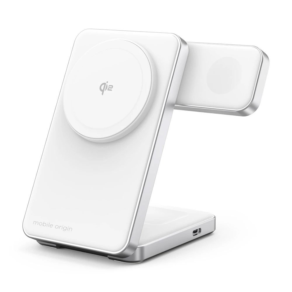 Mobile Origin Qi2 CompactStand 3-in-1 - White/Silver