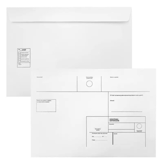 Doručenkové obálky C4 (229x324 mm) sú samolepiace s krycou páskou. Priamoprepisujúce doručenkové obálky na dokumenty formátu A4.