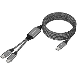PremiumCord USB-C Inteligentný rýchlo nabíjací kábel so šikovným rozdelením výkonov 1m - Nabíjací kábel podporuje USB PD3.1 protokol (Power delivery) - Podpora nabíjania a napájania až 20V/5A - 100W - Dátový preno 480Mbps USB2.0 - K dispozícii dva výstupné konektory, medzi ktoré elektronika inteligentne rozdeluje nabíjací výkon pre väcší výkon (notebook) a menší výkon (smartphone) - Za pomoci adaptívneho inteligentného riadenia alokácie výkonu je možné nabíjat dve zariadenia súcasne úcinne a bezpecne. - V prílohe je tabulka s popisom inteligentného rozdelenia výkonu na dva výstupné konektory. - Robustná nylonová tkanina pre spolahlivú ochranu kábla - Zalievané konektory v kovovom puzdre - Strieborné poniklované konektory - Jednoduché nabíjanie mobilného telefónu, notebooku a dalších prístrojov - Farba kábla: šedo/biela - Farba metalických konektorov: matne šedá - Balenie PVC sácok s etiketou a EAN kódom - Dlžka: 1m