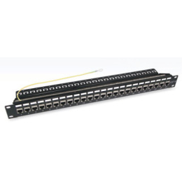 Popis výrobku OXnet 19" modular patch panel 24port 1U, for UTP and STP keystones, empty, blackOXnet 19" modulárny patch panel 24port 1U vhodný pre UTP i STP keystony, prazdny bez keystonov, čierny 19" prepojovací panel moduárny - netienené i tienené prevedenie (podľa použitých keystone modulov) - výška 1U (4,5cm) - počet portov 24 - typ svorkovnice (podľa keystonov) - vyväzovacia lišta - zemniaca lišta vr. kabelu