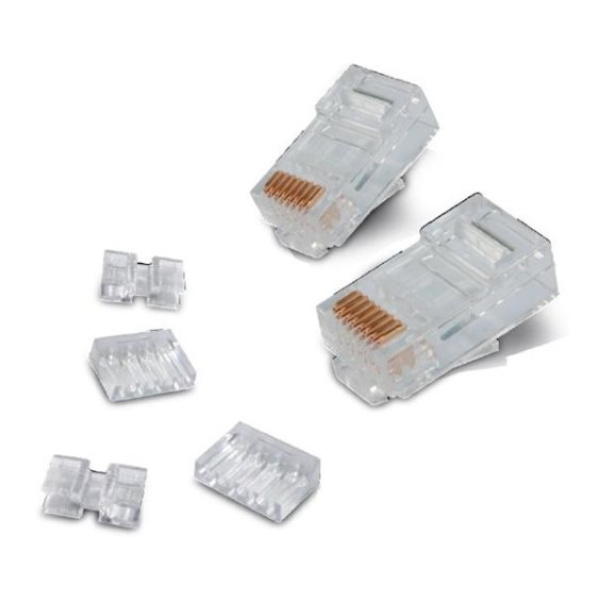 Konektor pre štruktúrovanú kabeláž - typ vodiča lanko Cat.6A do 500MHz - prenosová rýchlosť 10000Mbps = 10Gbps Pre káble typu drôt. Balenie 100 kusov. Technické parametry: 1.Housing Material : Polycarbonate, UL 94V-2, NO Poison. 2.Material Contact : Phosphor Bronze. 3.Contact area: Plated gold over 50u" 4.Contact area: Plated Nickel over 60u", the other area plated Nickel over 30u" 5.Housing Color : Transparence 6.Operation Temperature : -40stC to 80stC