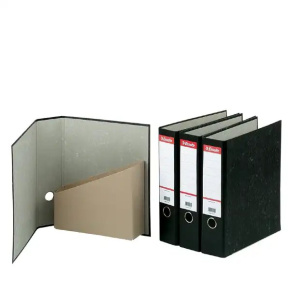 Celopapierový pákový poradač s vonkajším mramorovým poťahom a čiernym chrbtom s natlačenou etiketou.