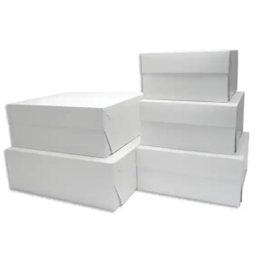 Krabica na tortu z jednostranne bieleného kartónu. Tortové krabice sú vyrobené podľa medzinárodných