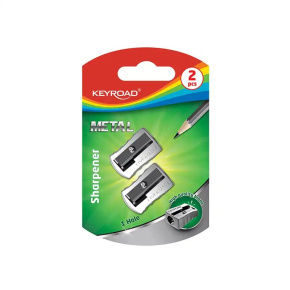 Strúhadlo z odolného kovového materiálu na 2 ceruzky. Ergonomický tvar strúhadla a rebrovaná protišm