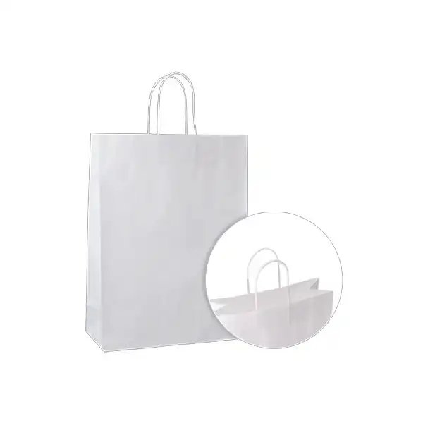 Papierová taška s krúteným uchom.Farba: bielaGramáž papiera: 100g/m2.Balenie: 200 ks