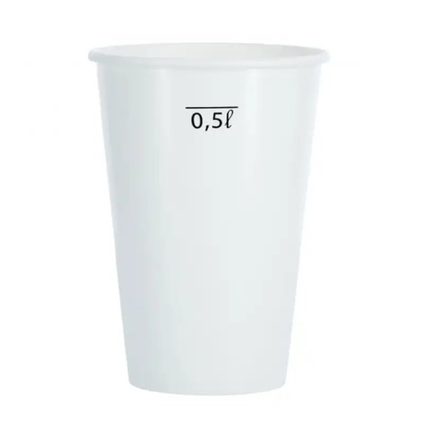 Popis výrobku Papierový pohár 630 ml biely s ryskou 0,5 l 50ks
