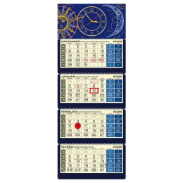 Luxusný štvordielny kalendár s menami v SK + CZ, názvy mesiacov a dní v SK, CZ, UK a DE. Súčasťou kalendárov LUXUS je "elektrostatický označovač" a 13. list s prehľadom všetkých sviatkov EÚ. Hodiny QS