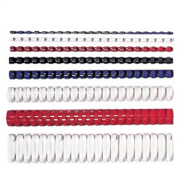 Plastové hrebene s 21 krúžkami pre krúžkovú väzbu dokumentov A4 (prípadne pre viazanie dokumentov A3 na šírku). Cena za balenie. Určené pre hrebeňovú väzbu dokumentov na viazacích strojoch.