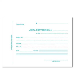 Popis výrobku Potvrdenka A6 s juxtou, číslovaná, samoprepis 3 x 25 listovBalenieblokFormátA6Tlačivá pokladničné doklady a potvrdenky