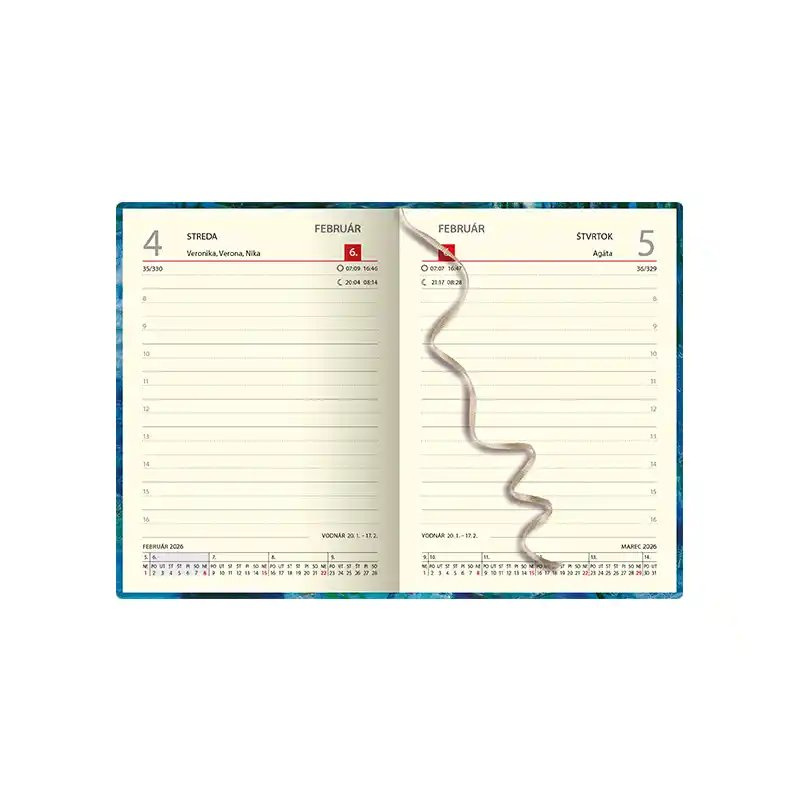 Jedinečný, praktický a spratný denný diár s motívom MALÝ PRINC. Malý rozmer a množstvo miesta pre poznámky a termíny. Povrchová úprava - soft touch lamino, efektná strieborná razba. Vhodný ako darček.