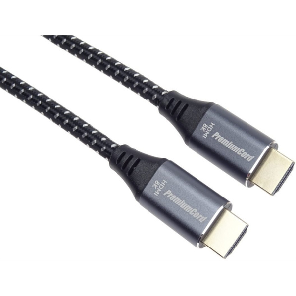 Špičkový ULTRA HDMI 2.1 prepojovací kábel pre najvyššie rozlíšenie 8K @ 60Hz a 4K @ 120Hz s kovovými Zinc-Alloy konektormi, flexibilným káblom pre najnáročnejšie použitie. Kábel je viacnásobne tienený, dokáže prenášať digitálny zvuk aj obraz a podporuje digitálnu ochranu obsahu HDCP. Kábel má integrovaný vysokorýchlostný prenos ethernetu. - HDMI 2.1 High Speed ??kábel + Ethernet kábel - Maximálne rozlíšenie: Ultra HD 8K @ 60hz, 4K @ 120Hz, YUV 4:4:4 - Maximálny dátový prenos: 48Gb/s - Pozlátené kovové konektory: HDMI typ A (19 pinov) male <=> HDMI typ A (19 pinov) male - Rozlíšenie: 7680 × 4320 bodov pri 60Hz, 3840 × 2160 bodov pri 120Hz alebo nižšie podporované formáty 1080p FULL HD/1080i/720p/720i - Podporuje : HDMI 2.1 a nižšie - Podporuje HDCP 2.2, Enhanced Audio Return Channel (eARC), High Dynamic Range (HDR) - Podporuje: 8K, 4K, Deep Color, 3D, xvYCC (xvColor), auto lip-sync, eARC, CEC, HDCP, Dolby TrueHD, HEC - 3D video po HDMI pripojení - VRR (Variable Refresh Rate – variabilná snímková frekvencia) - Farebná hĺbka: 24-bit (16.7 million farieb). - Trojvrstvové, vysoko kvalitné tienenie - Spätný audio kanál pre poslanie signálu z tunera TV späť do domáceho kina/surround systému - Prenos počítačovej siete (ethernetu) po HDMI kábli - 19-žilový kábel, trikrát tienený, 100% medené vodiče AWG30 - Kábel s príjemným bavlneným opletom bielo-čiernej farby - Prierez kábla: 6mm - Pozlátené konektory - Kovové hliníkové krytky konektorov - Farba krytov konektorov strieborno-šedá - Balenie v PVC sáčku s EAN kódom a popisom - Dĺžka kábla: 1,5m