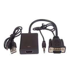 PremiumCord VGA + audio elektronický konvertor na rozhraní HDMI Prevádza signál VGA na digitálne rozhranie HDMI pre LCD alebo TV HDCP kompatibilný Jednoduchá inštalácia a montáž, prostým zapojením do vypnutého počítača a monitora. Podporuje rozlíšenie FULL HD 1080p (1920 * 1080) Podporuje rozlíšenie: 640 * 480,800 * 600,1024 * 768,1280 * 768,1280 * 1024 až 1920x1080 FULL HD Prevádza audio signál z konektora stereo jack do HDMI konektora (skutočne otestované, analógový zvuk z počítača sa prenesie do digitálnej podoby do portu HDMI, TV alebo LCD vybavené reproduktory budú hrať). Vstupy: VGA DB15HD male, AUDIO stereo jack male Výstup: HDMI female Napájanie je z USB portu, na tento účel slúži USB micro kábel, ktorý sa zapojí do ľubovoľného USB konektora Podporuje: Windows 98 / 98SE / ME / 2000 / XP / Vista / 2003 / Windows 7/8/10, Mac, Linux Prevodník je úplne nezávislý na operačnom SW Dĺžka kábla: 20cm Váha: 56g