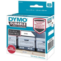 Odolné štítky LW Durable multifunkčné štítky, biele polypropylénové, 89x25mm, 350 etikiet na rolke, 2 rolky Prednosti odolných štítkov LW Durable • Vdaka silnému priemyslovému lepidlu štítky velmi dobre držia na papieri, plaste, kovu, dreve, sklu a na dalších povrchoch • Ochranná vrstva zabranuje odlepeniu zaprícinenému oterom ci pôsobením priemyslových olejov a cistiacich prostriedkov • Štítky odolajú až 85% vlhkosti • Štítky sú urcené pre teploty od -18 do +50 stupnov Celzia • Ideálne na oznacovanie v dielniach, suterénoch, garážach, skladoch ci oznacovanie inventára/vybavenia a podobne