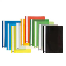 Plastové rýchloviazače s priehľadnou prednou stranou a vymeniteľným pásikom pre označenie dokumentu. Zadná strana je farebná.
